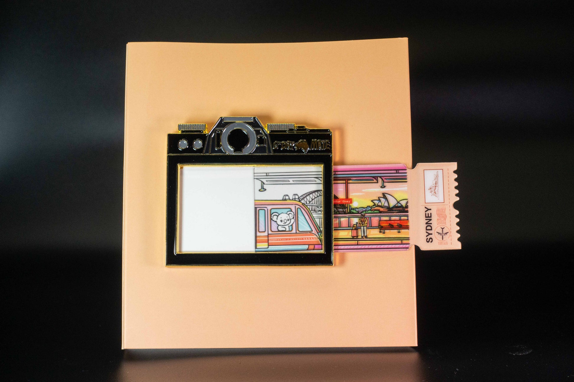Inspired by Circular Quay, one of the most beautiful stations down under, this pull-tab magnet reveals a train gliding through the view.