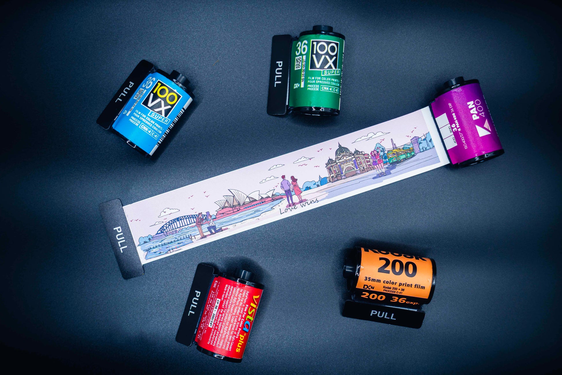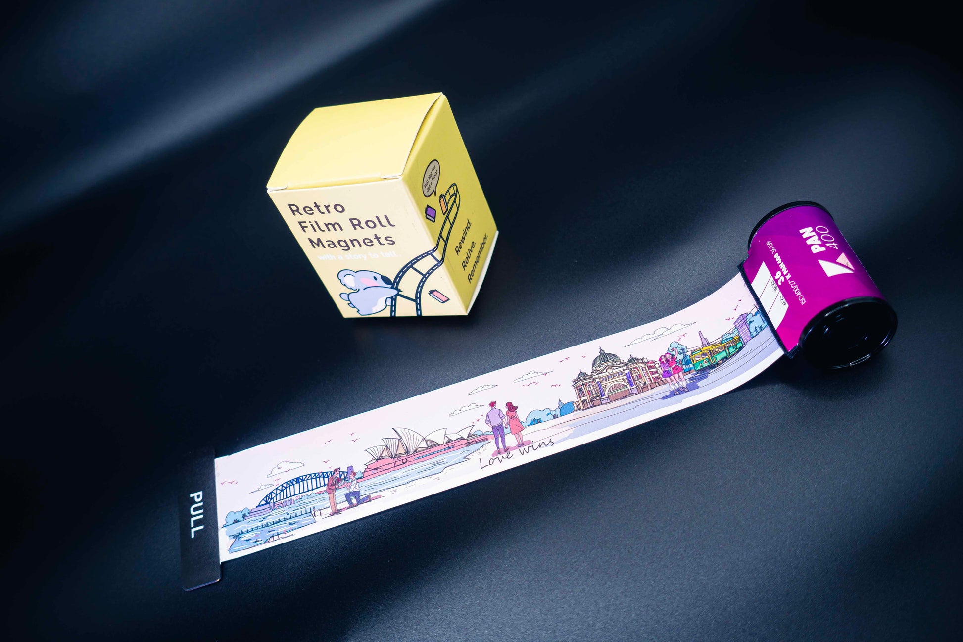 Retro Film Roll Magnet - Hand-Drawn Love Wins Australia